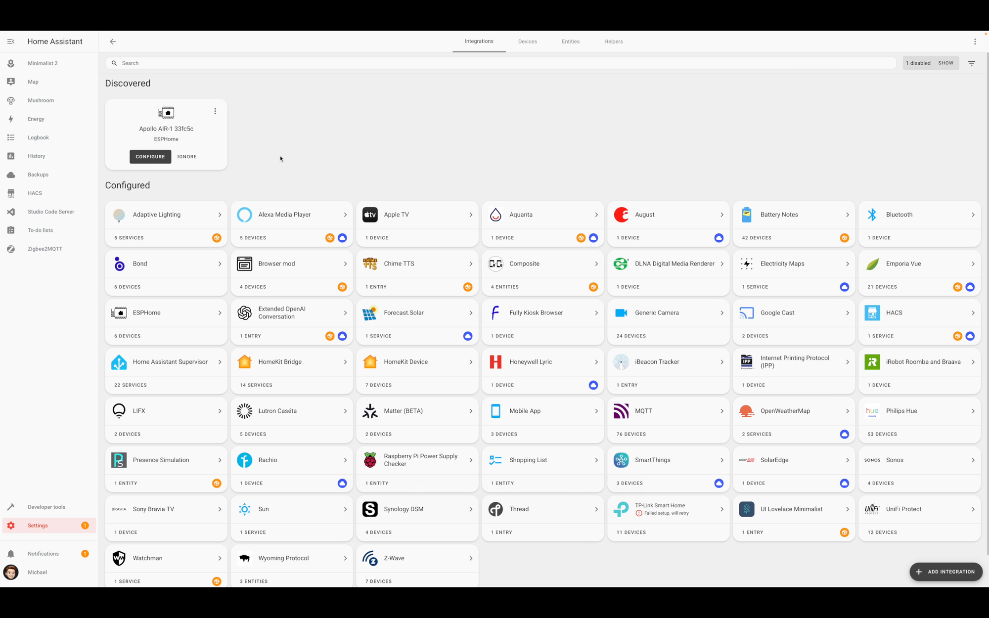 Once again, you’ll see a notification in Home Assistant that a new device was discovered. Click to add it, and then you can assign it to an area, and Apollo setup is complete.