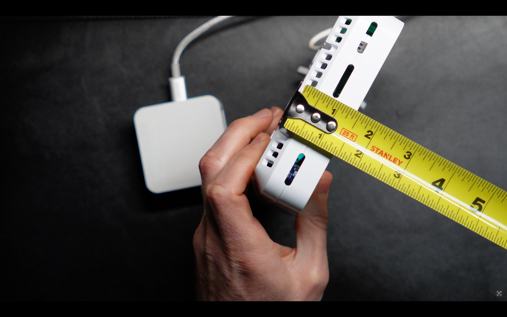 The AirGradient is significantly larger at roughly 5.1 x 5.1 x 1.4 inches (130 x 130 x 36 mm), compared with just 2 3/8 x 2 3/8 x 1 1/4 inches (61 x 61 x 30 mm) for the Apollo. In other words, the Apollo is less than half the length and width of the AirGradient.