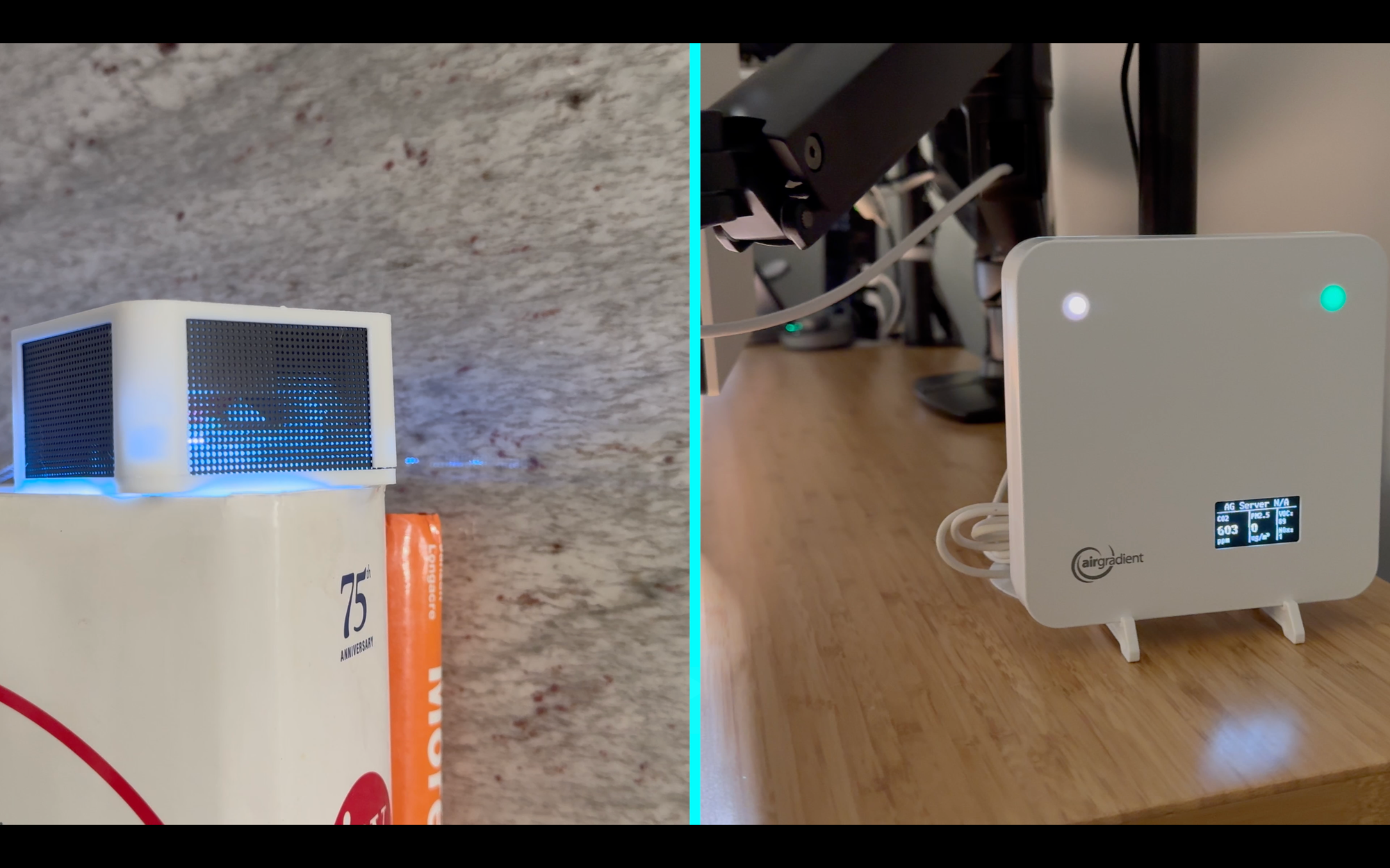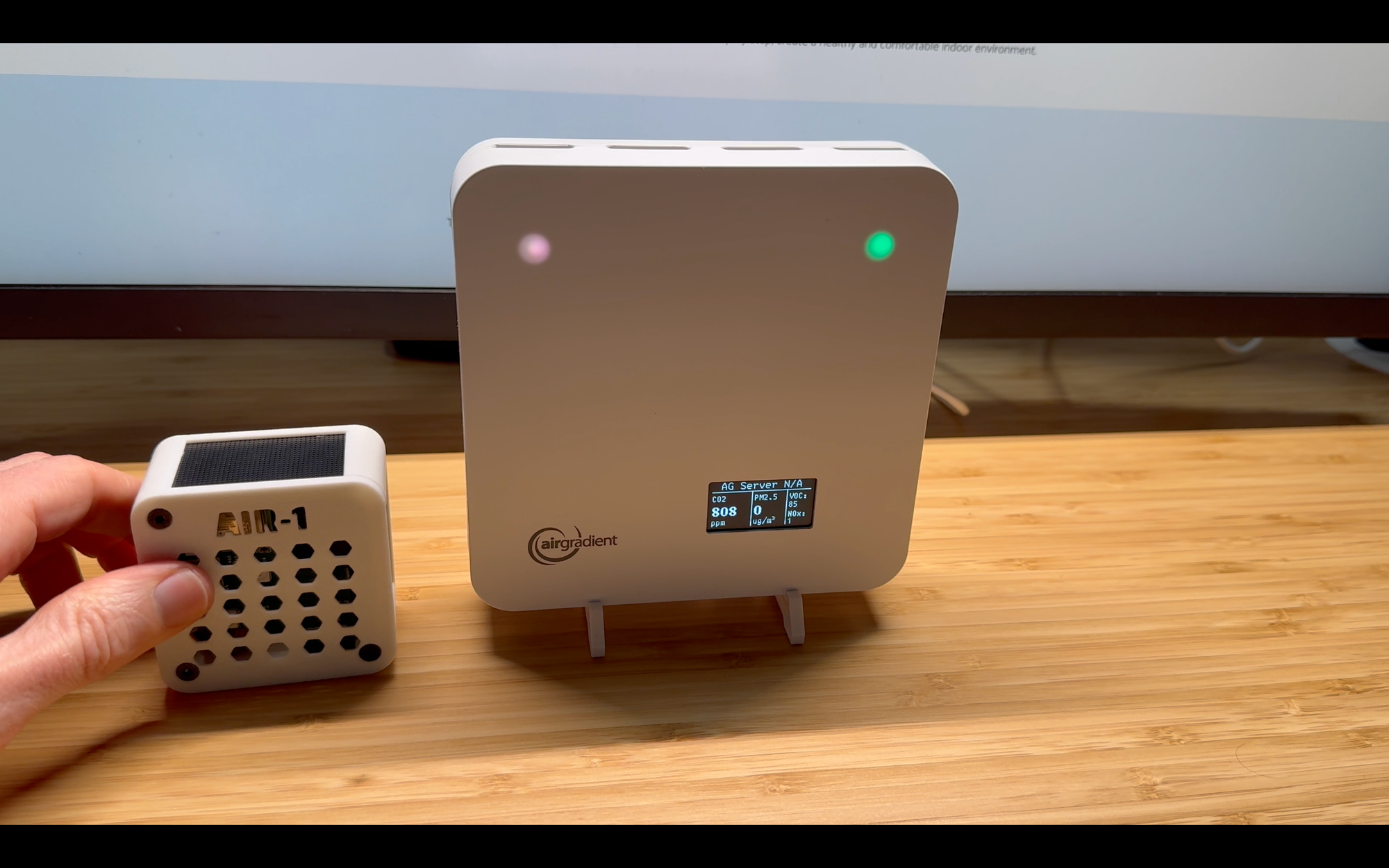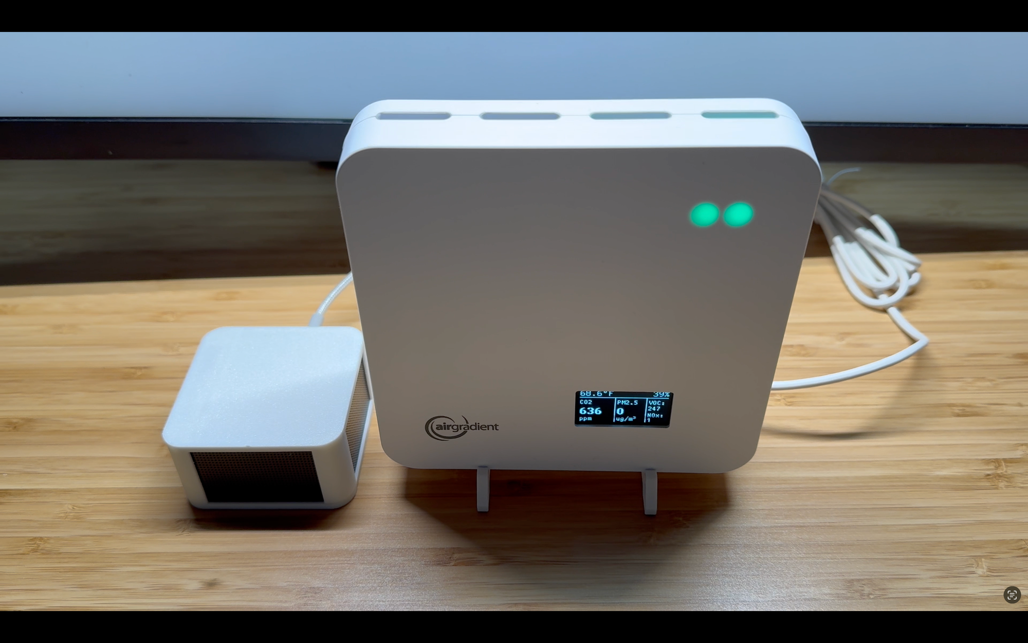 Both devices feature RGB LEDs which can be used as indicators, but they function differently. On the AirGradient, you can choose for the LEDs to represent particulate matter, carbon dioxide, or just turn it off.