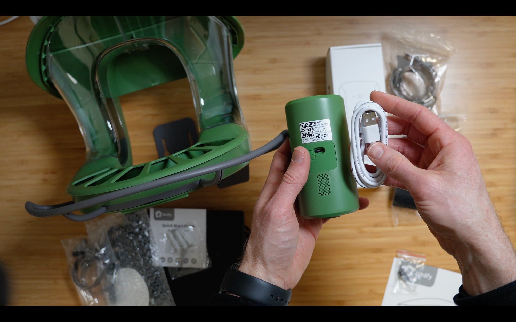 The box comes with everything you need for setup and installation, including the bird feeder, perch, two cameras, mounting bracket and straps, charging cable, and the solar panel kit. Most of the components are plastic so I can’t yet speak to long-term durability, but the mounting points are metal.