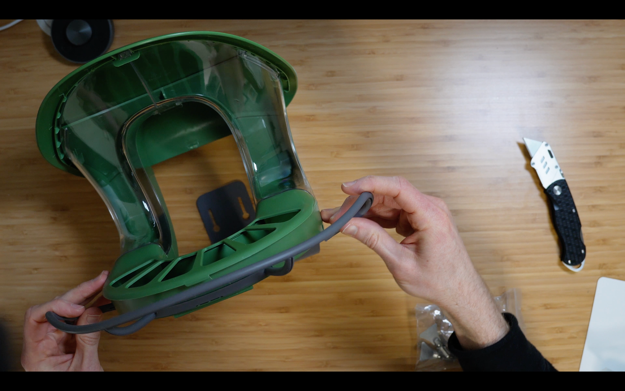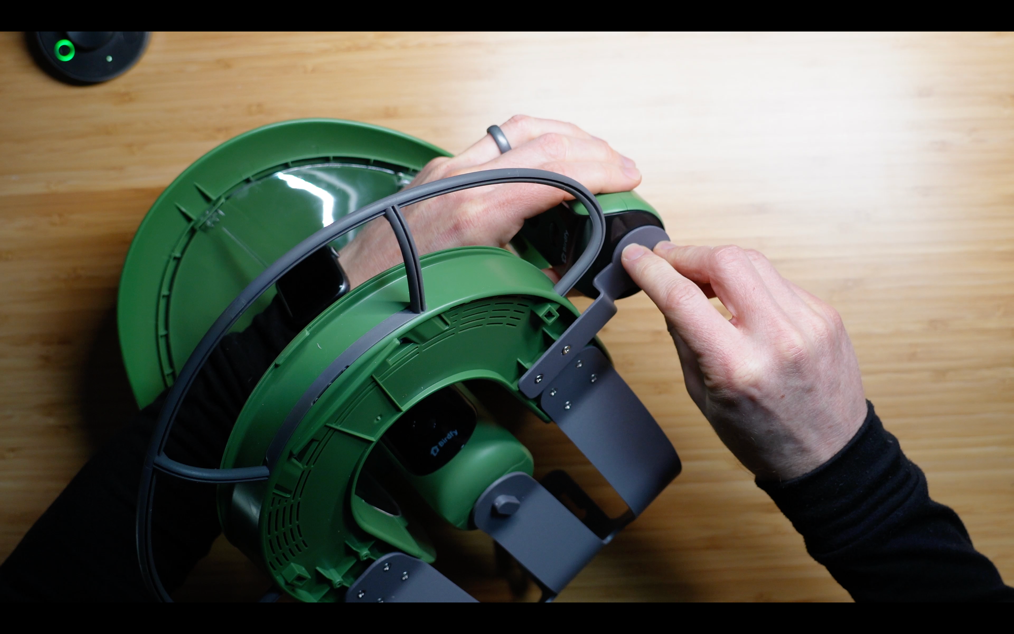 To set it up, you’ll attach a gray plastic perch to the front. Then, you can install the front-facing camera by screwing it into place just using your hand. After that, you’ll screw in a mount for the side camera using the provided screwdriver and screws. Then, you can mount the side camera in the same way you mounted the front camera. All of this can be done in just a few minutes.