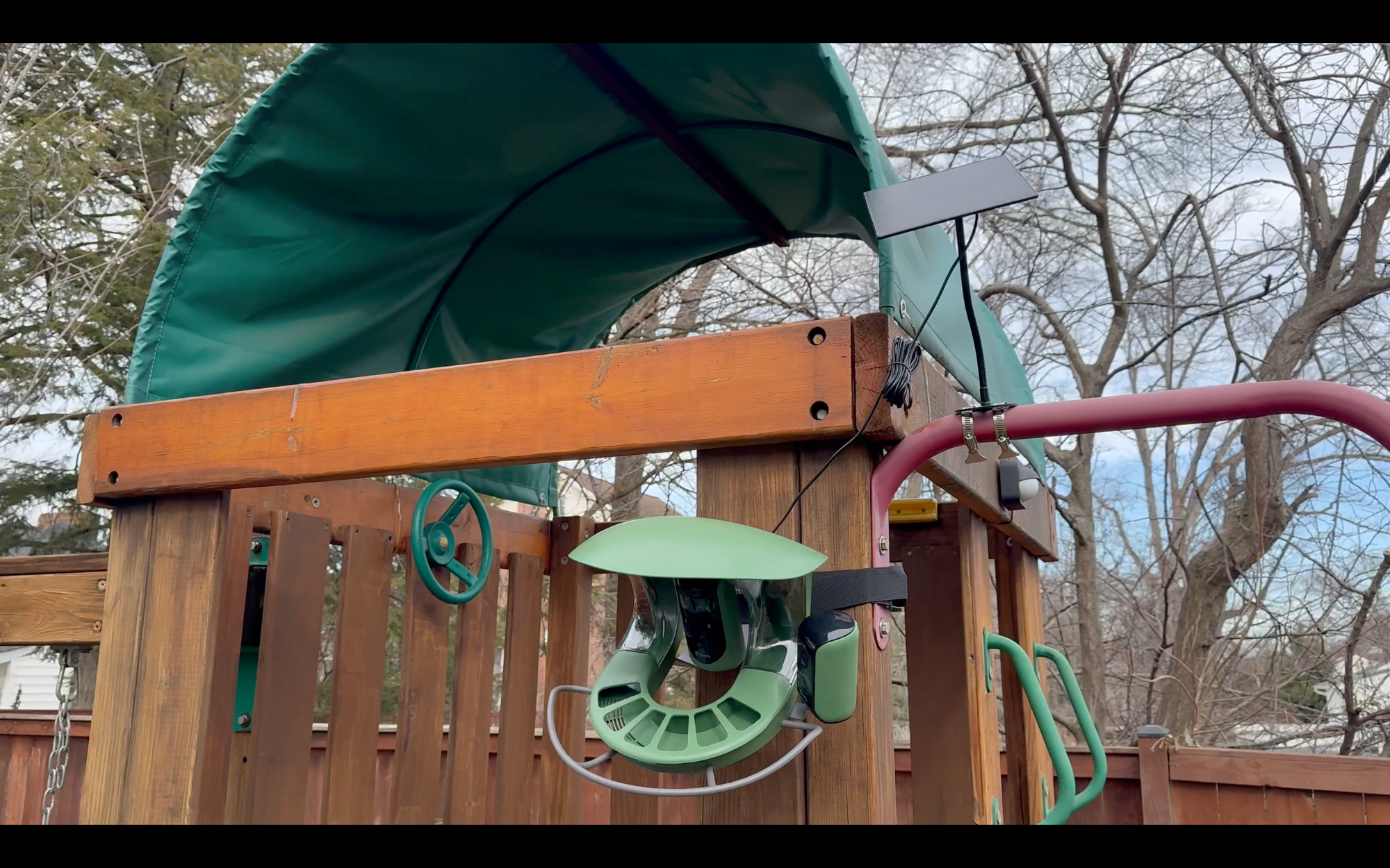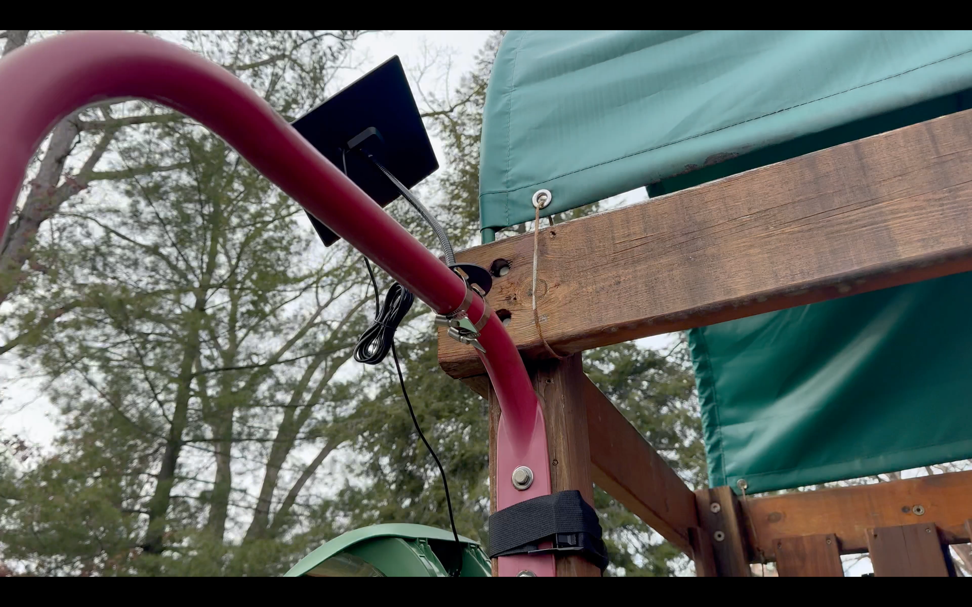Since the tree I chose was the farthest possible point from a WiFi access point, I decided to also test mounting it to our swing set for a more stable WiFi connection. The steps I followed for this were identical to the tree mount.