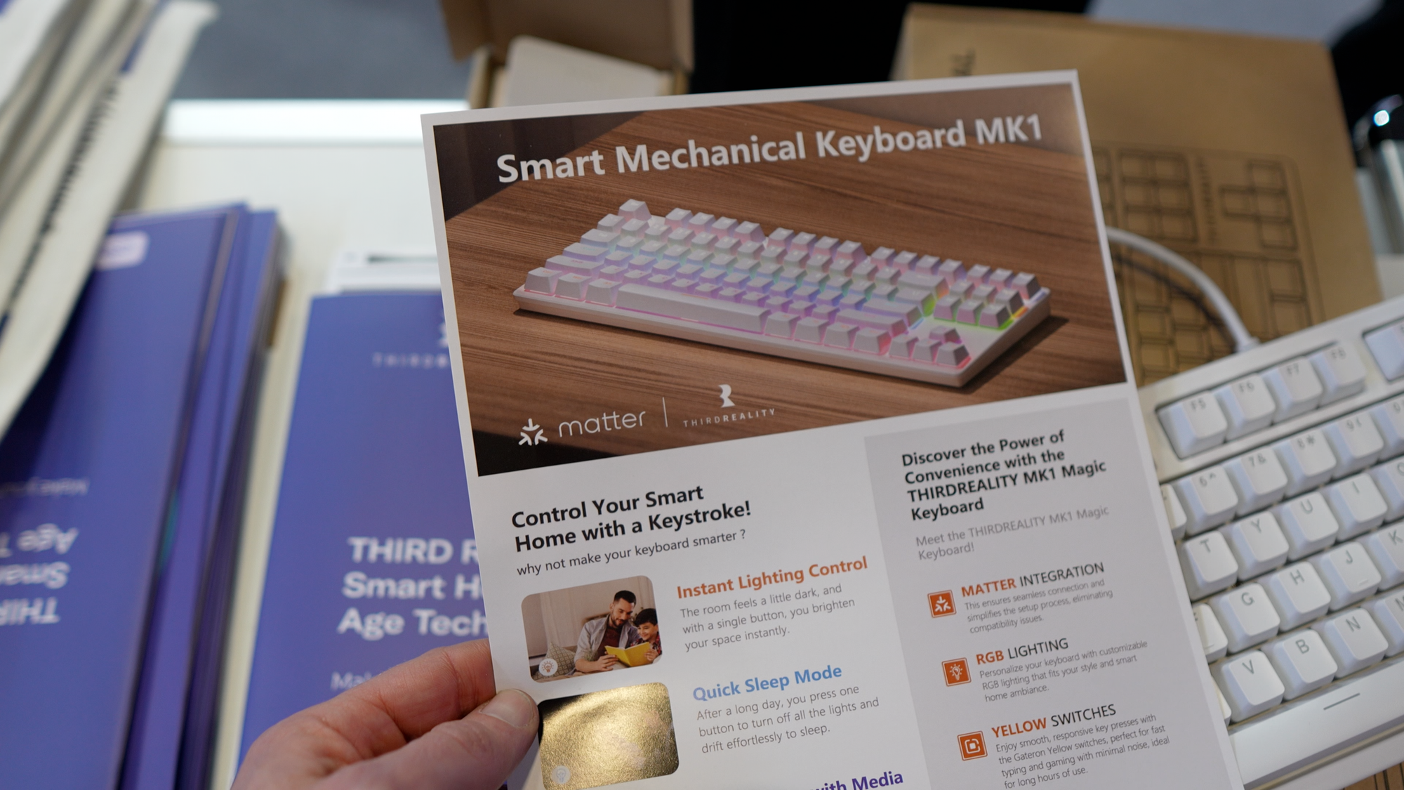 One thing I didn’t know I needed until I saw it was the Smart Mechanical Keyboard MK1 by Third Reality. It connects to your smart home using Matter, giving you10 programmable buttons right on the keyboard for controlling your smart home. You could adjust lights or trigger automations in a single click. The keyboard uses Gateron — not sure if I’m saying that right — Yellow switches, and has built-in RGB lights. No word yet on pricing or availability.