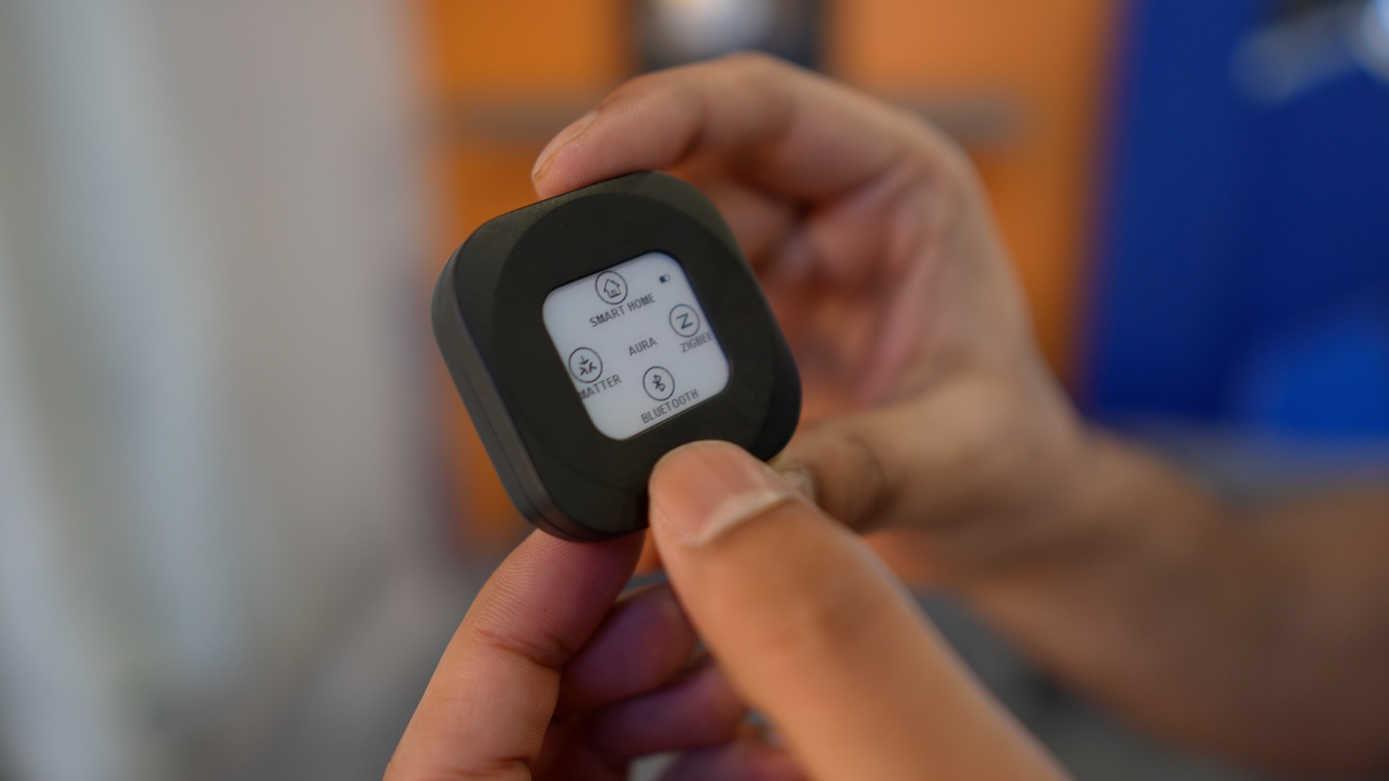 Linxura showed off its new Aura portable smart home controller that supports Zigbee and Matter. It is the first smart button with an e-ink display. You can configure scenes and control devices from the Aura, and it will be available later in the first quarter for $39.99