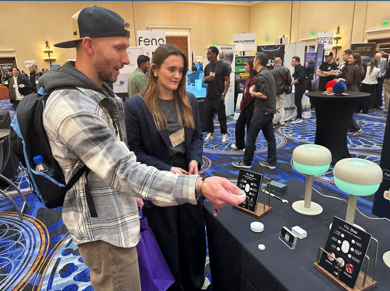 Flic and Linxura both showed off various smart buttons for smart home control. Flic debuted the Flic Duo, which has two buttons of unequal size. You can wall-mount it and simply use it to turn lights on and off, or remove from the wall mount to access motion-based commands. Between button press, swipes, and rotations, you can configure over 30 unique commands. It is Matter compatible, and will be available for pre-order in late January at an early bird price of $49.