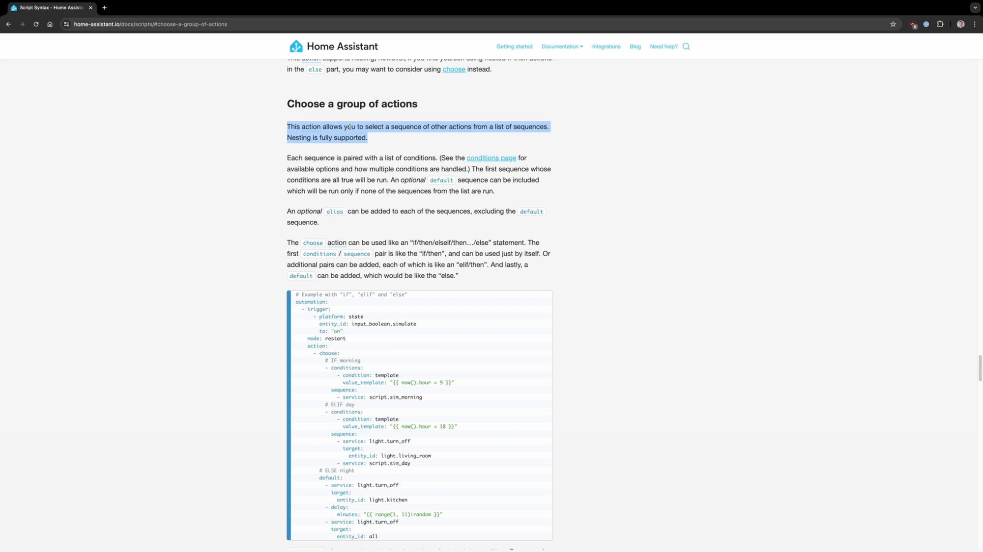This brings me to how I did it. If you’re using Home Assistant, but you’re not using the Choose function in your automations, you are missing out. Choose allows the automation to pick what to do from among several choices.