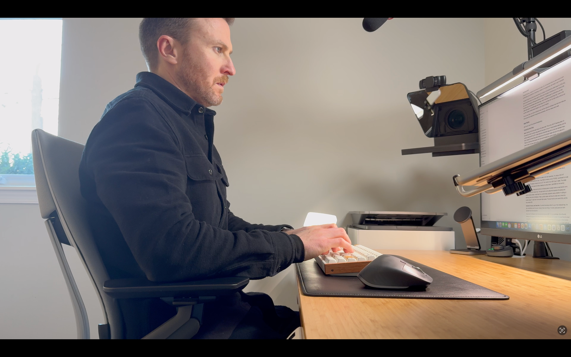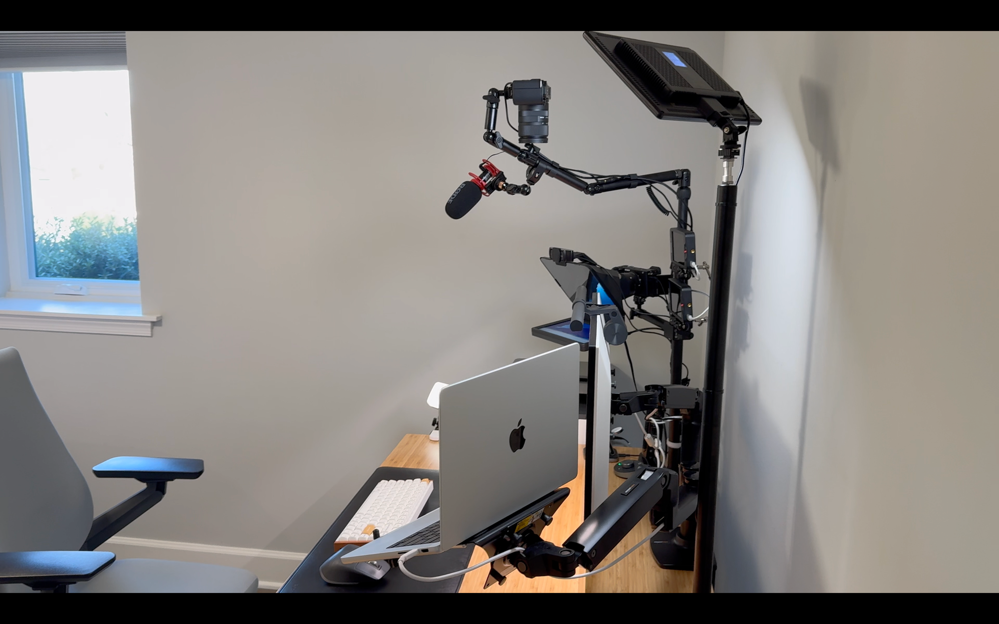 Teleprompter: But generally, you’ll find me at my desk when recording. I’ve tried many different approaches for planning and filming videos, but my preferred way is to write out a script and read from a teleprompter. For that, I’m using the Elgato Prompter. It is not cheap at $280, but it has sped up my YouTube recording workflow more than any other investment. What’s great is it auto-scrolls the text based on what I’m actually saying out loud, and it works really well.