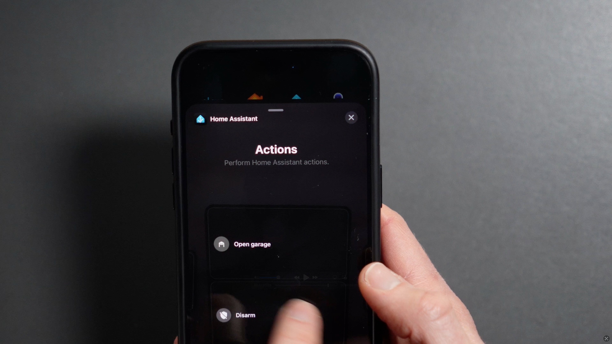 To do the same thing with Home Assistant, you can create and add an Action to open the garage door. However, unlike the HomeKit widget, this automatically fires the action upon a single click. In my view, this makes it too easy to mistakenly open the garage door in this case.