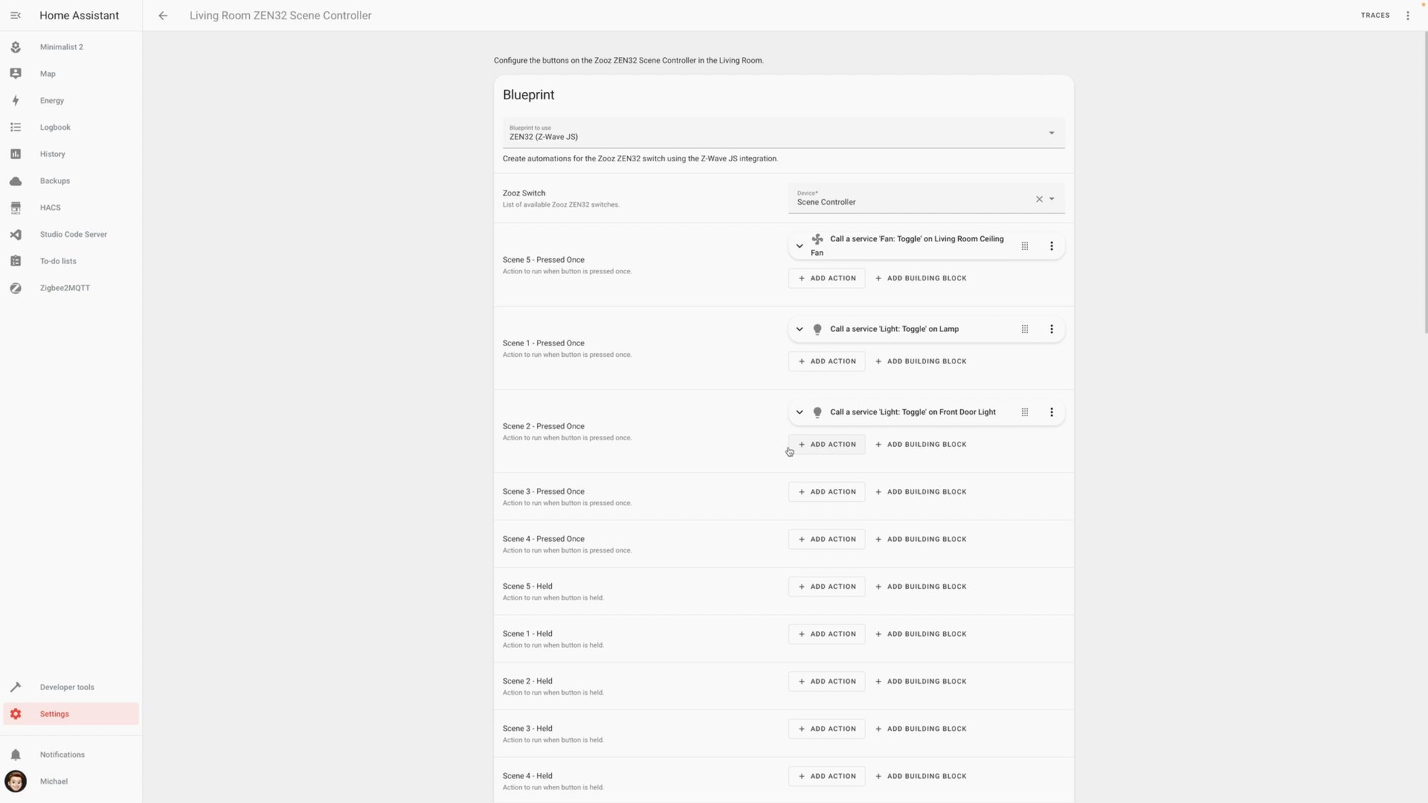 Pairing ceiling fans with Bond Bridge, and the Zooz ZEN32 Scene Controller with Home Assistant via Z-Wave