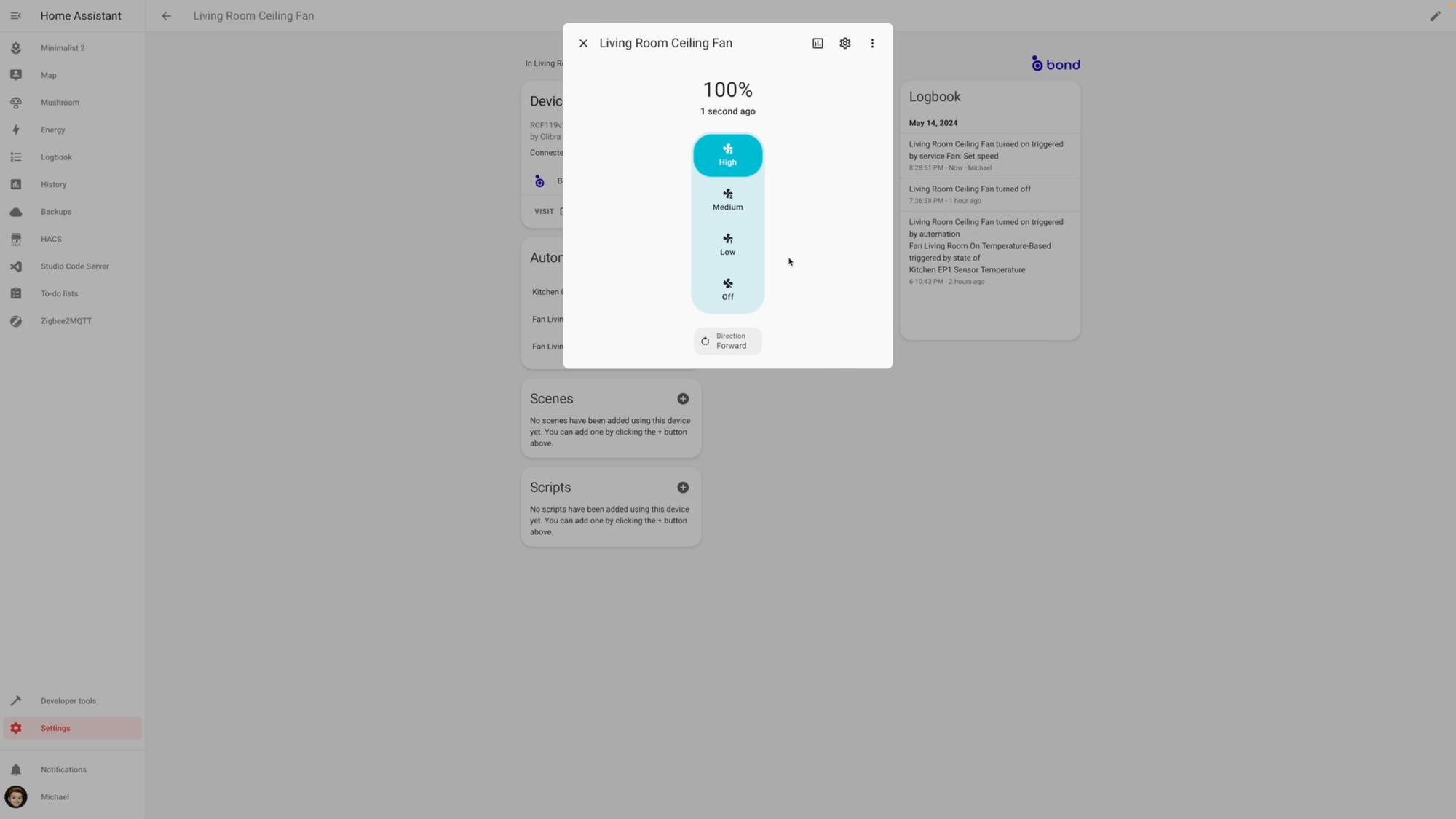 Making our remote-operated ceiling fans smart with Bond Bridge, Zooz ZEN32 Scene Controller, and Home Assistant