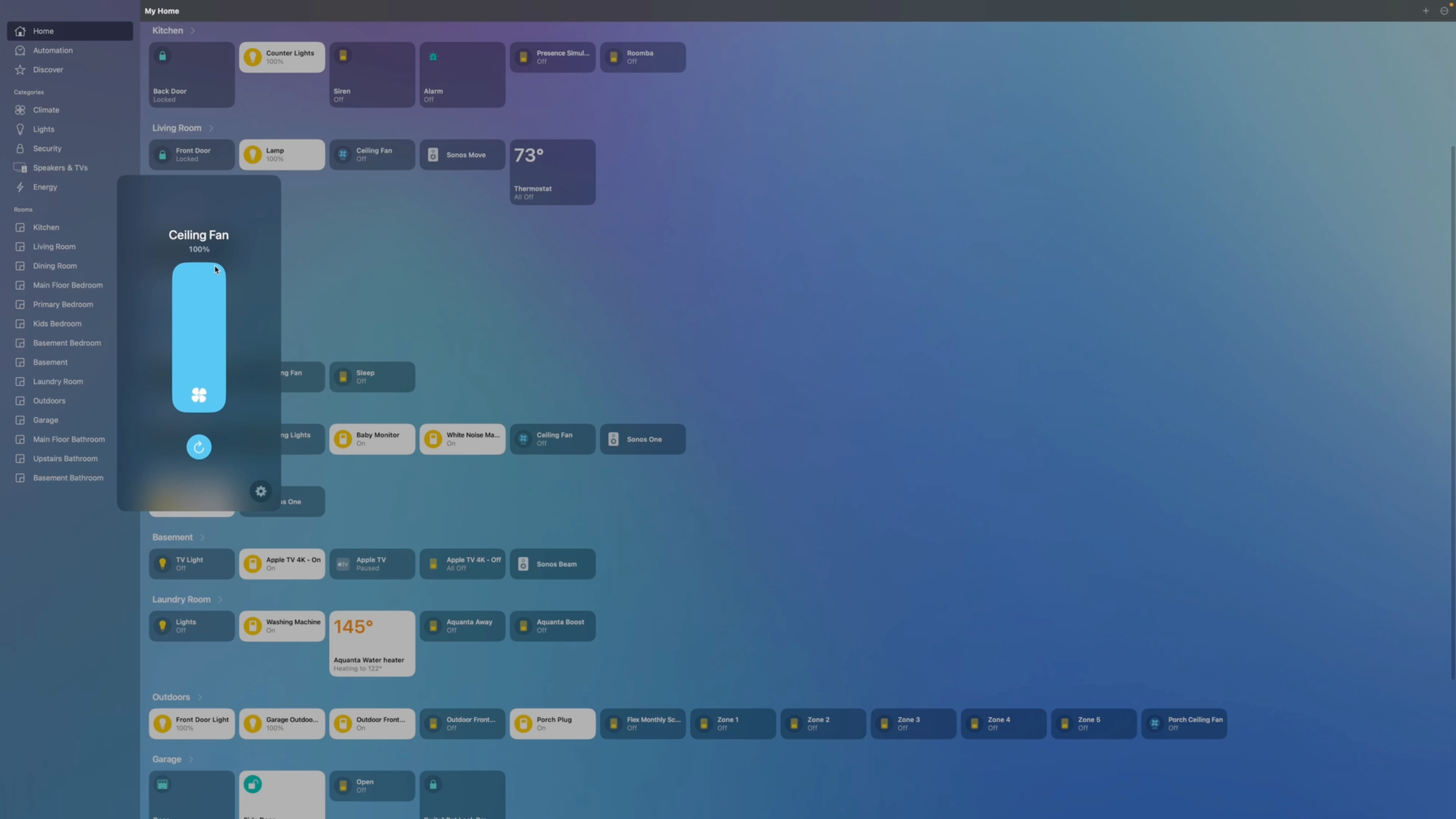 We also have the fans automatically turn on and off in home automations based on things like the room temperature and human presence.