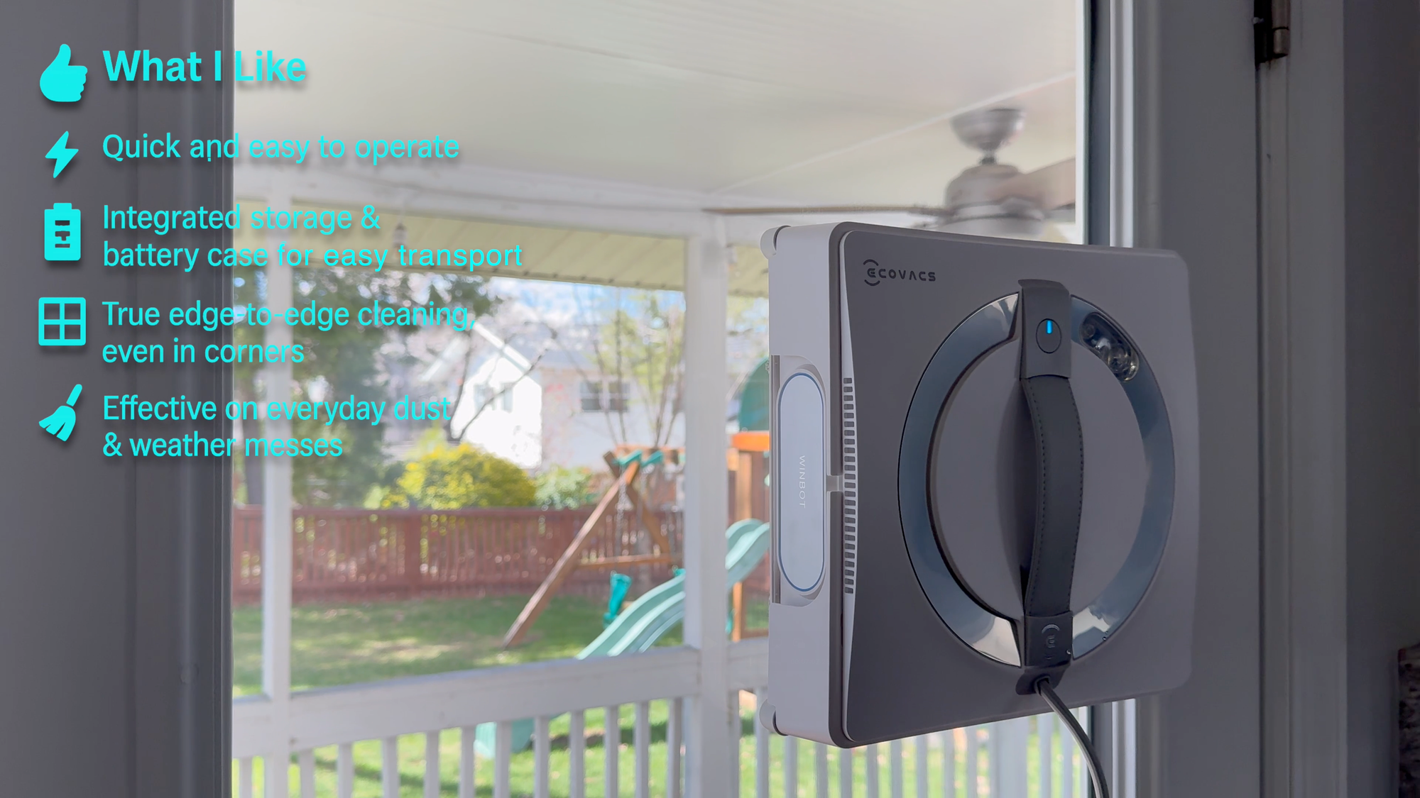 I also appreciated its true edge-to-edge cleaning. This thing actually does cover the entire window surface, and navigates really well, even in the corners.